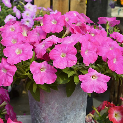 Селекция тайской компании AMERISEEDS! Серия многоцветковой петунии ампельным габитусом, размер цветка 6-7 см, формирует шарообразный куст высотой 20 см, длина плетей достигает 90 см.
