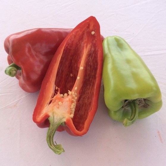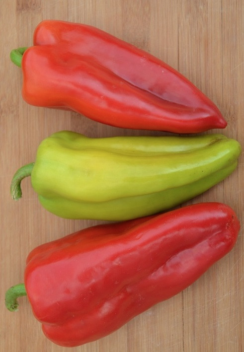 Плоды венгерского типа, отличного качества, конической формы, размером 17×7 см, массой 170-200 гр., с толщиной стенки 5-7 мм, в технической спелости светло-зеленого цвета, а в биологической – насыщенного красного, очень транспортабельные.