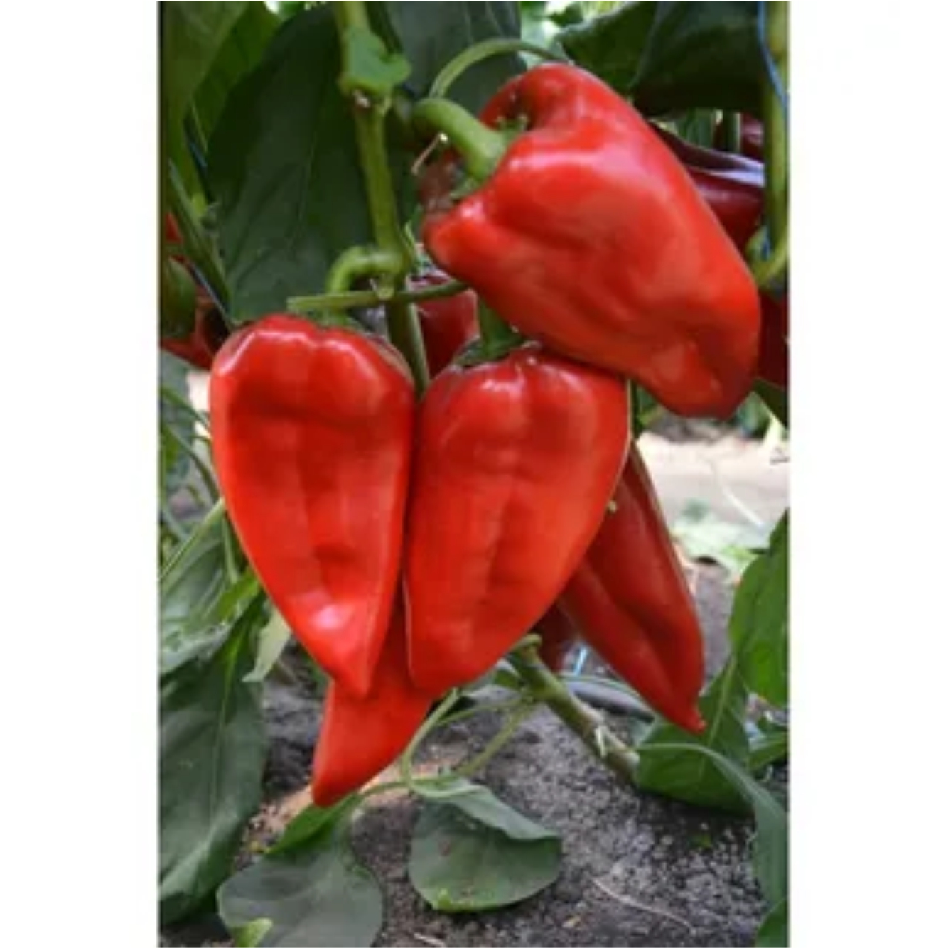 Плоды двух-трехкамерные, конической формы, размером 20×7 см, массой 160-180 гр., с толщиной стенки 6-7 мм, в технической спелости темно-зеленого цвета, а в биологической – темно-красного, с высоким содержанием сухих веществ, очень транспортабельные.