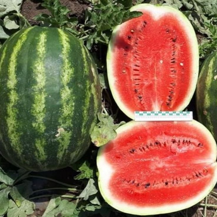 Плоды крупные, весом до 13 кг. Форма – овальная, правильная. Кожура у этого арбуза полосатая, с выраженным контрастом цветов. Толщина кожуры – до 2,5 см. Мякоть – красная, сахаристая, плотная, без растрескиваний и пустот. Вкус – сладкий, свежий. Использовать плоды лучше всего для употребления в свежем виде, но также можно мариновать.