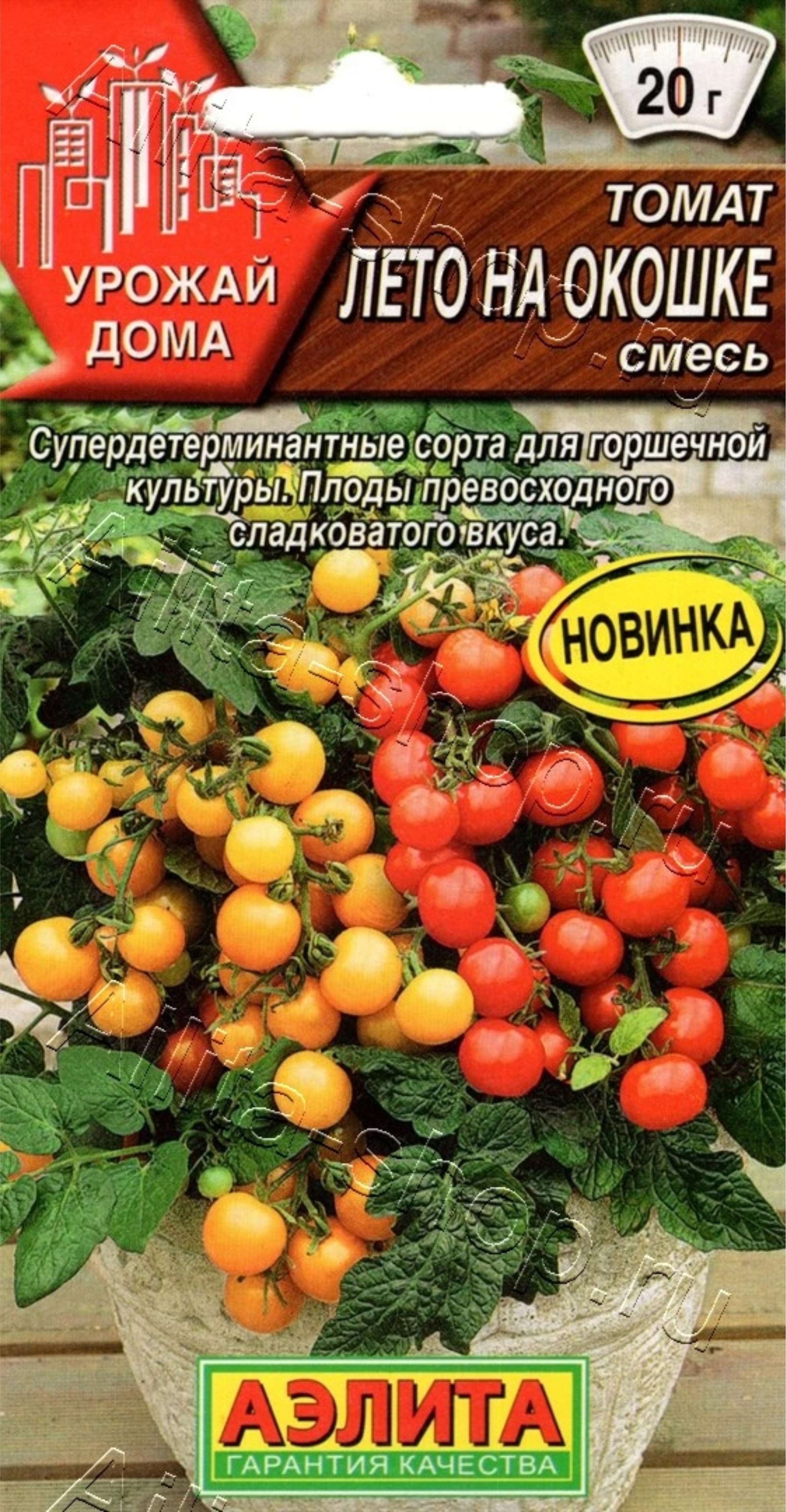 Ультраранняя смесь супердетерминантных сортов томата для горшечной культуры. В сос тав входят сорта: Монетка (плоды желтые) и Пиноккио (плоды красные). Они также отлично растут и плодоносят в открытом грунте и в теплице. Первый урожай можно собирать через 85-90 дней от всходов. Растения компактные, высотой 15-20 см. Не требует пасынкования и формирования. Плоды округлые, массой 15-20 г, плотные, сочные и ароматные, превосходного сладковатого вкуса. Прекрасно подходят для украшения блюд и канапе, великолепны в засолке. Сорта неприхотливы в выращивании.