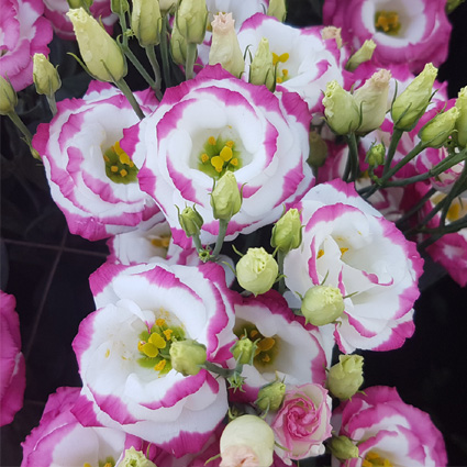 Высота 90-100 см.Подходит для выращивания при более повышенных температурах, чем стандартные для эустом.Махровые цветы среднего размера.Долго стоит в срезке.