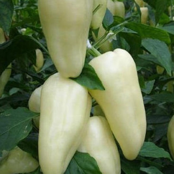 Растение генеративного типа с хорошей силой роста и удлиненным периодом плодоношения. Плоды привлекательного кремово-желтого цвета, конические, четырехкамерные, длиной 11-12 см, весом 140-160 г (до 200 г). Хорошо транспортабельные и плотные - толщина стенки 5-6 мм. Для выращивания в открытом грунте (урожайность - 1000 кг/сотка), пленочных теплицах (урожайность - 24 кг/м.кв) и невысоких туннелях. Рекомендованная густота стояния - 3 растения на 1 м.кв. (закрытый грунт), 350-400 растений на сотку (открытый грунт). Устойчив к вирусным заболеваниям.