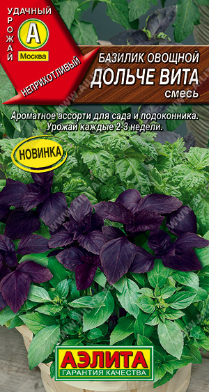 Новинка из трех самых вкусных базиликов.В состав смеси входят сорта КАРАКУМ ® – 30% (фиолетовый, с ароматом корицы), БУТЕРБРОДНЫЙ ЛИСТ – 35% (зеленый, с крупными листьями и ненавязчивым гвоздичным ароматом), ЛИМОННОЕ ЧУДО ® – 35% (зеленый, с лимонно-мятным ароматом и сладко-острым вкусом). Наибольшее количество ароматических веществ накапливается в листьях к началу бутонизации. Свежие и сушеные листья базилика добавляют в салаты, соусы, смузи, мясные и рыбные блюда, а также в масла – для их ароматизации. Смесь базилика и розмарина –отличный заменитель соли при бессолевой диете. Урожайность зелени 1,3-2,3 кг/м2 .