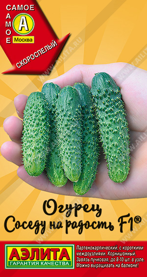 Скороспелый партенокарпический гибрид для весенне-летнего оборота (открытый грунт, пленочные теплицы). От всходов до технической спелости первых плодов 41-43 дня. Растение индетерминантное, с короткими междоузлиями, слабоветвистое. Завязи формируются большими букетами – до 8-10 штук! Плоды корнишонного типа, короткие – длиной 7-9 см, ? 3 см, массой 70-90 г, белошипые. Очень вкусные, без малейшей горечи. Продуктивность растения – 6-8 кг с растения.