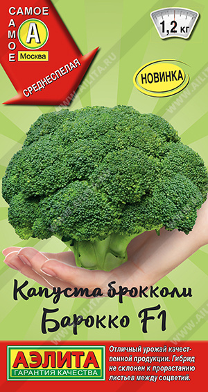 Отличный выбор для осеннего выращивания. Гибрид высоко ценится за высокий выход качественной товарной продукции. Не склонен к изменению окраски, образованию пустот и прорастанию листьев между соцветий. Среднеспелый, от высадки рассады до созревания 85-95 дней. Головки плотные, привлекательного голубовато-зеленого цвета, средним весом 1-1,2 кг. Брокколи рекомендуется для потребления в свежем виде, различной переработки и заморозки. Урожайность – 4-5 кг/м2.