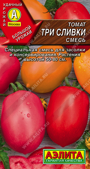 Смесь детерминантных томатов сливовидной формы с разной окраской плодов. В смесь вошли сорта: Столыпин ® (раннеспелый, плоды красные), Золотая пуля (среднеспелый, плоды оранжевые), Новичок розовый (среднеспелый, плоды розовые). Растения высотой 50-80 см. Плоды массой 50-120 г, отличного вкуса, очень сладкие и ароматные. Сорта холодостойкие, устойчивые к засухе и болезням. Урожайность высокая – до 9 кг/м2.