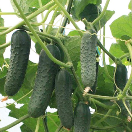 Очень ранний партенокарпик с высокой ранней и общей урожайностью. Открытый, компактный тип растения и короткие боковые побеги обеспечивают менее трудоемкий уход и удобство в сборе урожая. Формирует 2-4 плода на узле. Первый сбор на 38-й день от всходов. Плоды темно-зеленые, без полос, цилиндрической формы, длиной 12-14 см, при перерастании не становится "бочкообразными". Отличная лежкость и транспортабельность. Устойчив к настоящей мучнистой росе, кладоспориозу, вирусу огуречной мохаики, вирусу пожелтения сосудов огурца, Для выращивания в 1 и 2 обороте в пленке, стекле и открытом грунте. Подходит для самых ранних посадок в отапливаемых теплицах.