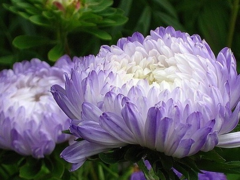 Пионовидная астра относится к одной из наиболее богатых разнообразием окрасок и оттенков серий астр. В ней насчитываются 20 сортов! Соцветия состоят из большого количества широких язычковых, плотно прижатых и загнутых в середину лепестков. Растения пирамидальной формы, высотой 65-75 см. Диаметр цветков 8-10 см. Прекрасно подходят для срезки, поскольку разветвление растений начинается снизу. С одного растения можно получить до 8-10 цветоносов. Пионовидные астры в закрытом грунте можно выращивать весной и осенью